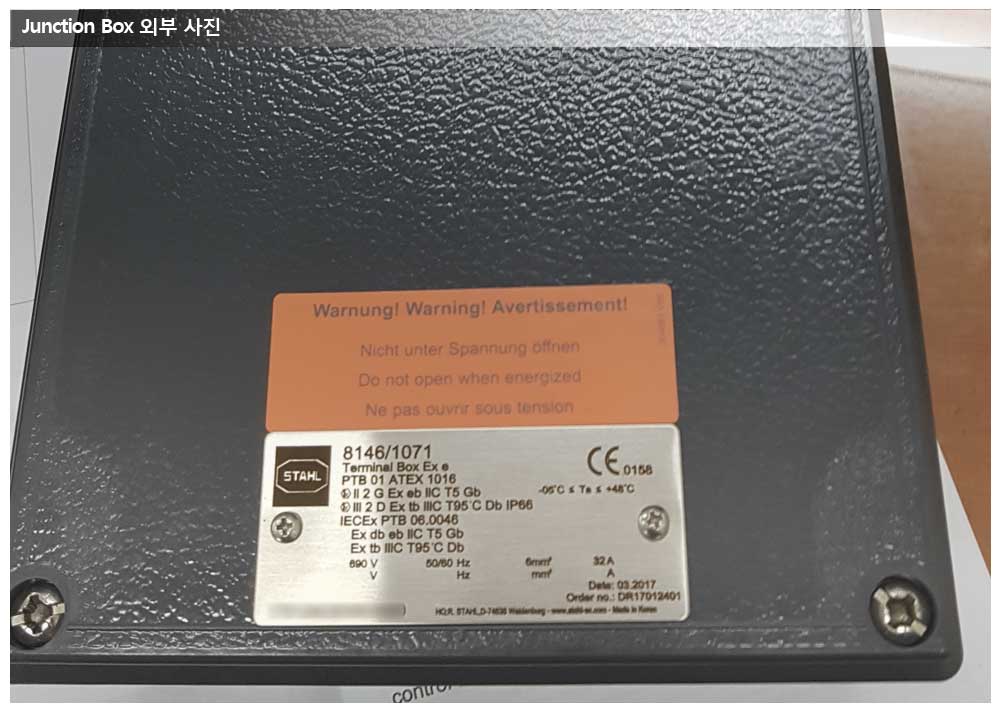 현대중공업, NASR프로젝트, R.STAHL사 Junction Box 페이지 정보 작성자 관리자 작성일17-04-24 14:55 조회19,080회 댓글0건 관련링크 이전글 다음글 목록 본문 공급품목 : R.STAHL JUNCTION BOX 상세사양 : 8146/1041, 8146/1051, 8146/1071 모델 특이 사항 : R.STAHL 의 국내 Workshop에서 가공하여 납기가 종전보다 4~6주정도 단축되었습니다. 댓글목록 등록된 댓글이 없습니다. 이전글 다음글 목록